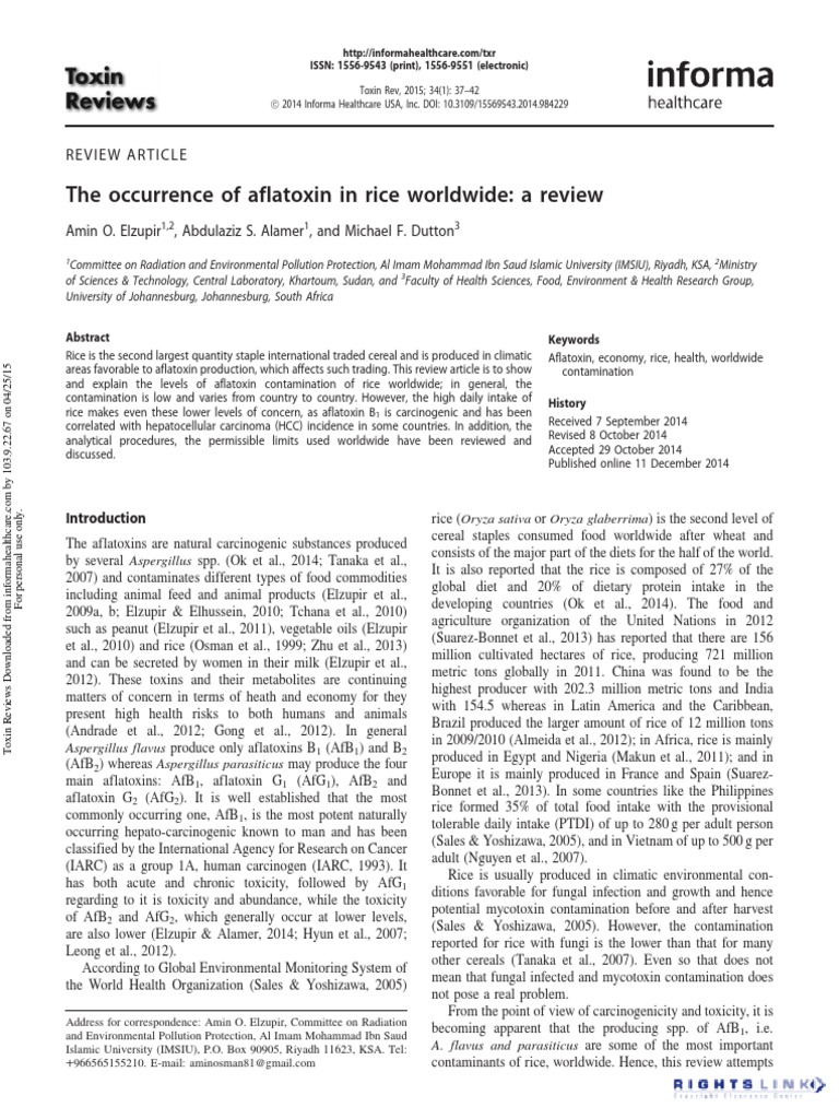 Aflatoxin In Rice , Rice Is The Second Largest Quantity Staple International Traded Cereal And Is Produced In Climatic This Review Article Is To Show And Explain The Levels Of Aflatoxin Contamination Of Rice Worldwide;